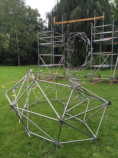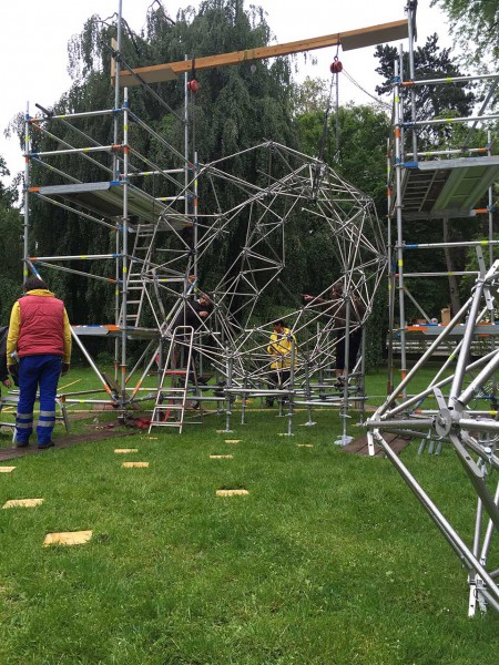 Aufbau der begehbaren Installation 510 von Jasper Niens im Merkelpark.